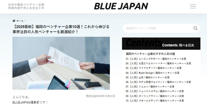 この度、全国の優良企業をまとめた日本ベンチャー名鑑「 BLUE JAPAN」にて、おすすめベンチャー企業に選ばれました!全国のベンチャー企業を分かりやすくまとめているので、ぜひ参考にご活用ください。
