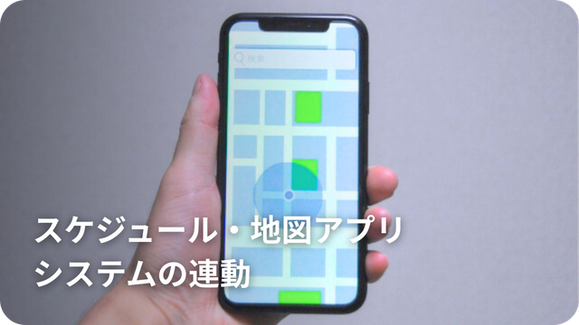 こちらも主に営業職が使用するツールです。営業職のスケジュールと、地図アプリ、そして訪問先の法人の情報を連動させる仕組みを取り入れています。例えば、スマホ上で自身のスケジュールを確認し、訪問予定として登録した法人名をクリックすると、その法人の住所が表示され、そこから地図アプリにアクセスすることができます。それによって、初めて訪問する先でも迷わずたどりつくことができるのです。また訪問後に、スケジュール上に登録されている法人名をクリックすると、営業管理システムにジャンプして、面談の履歴を入力することができます。これによって、訪問した直後に重要な情報を蓄積することができるのです。(こちらについても、もちろん機密情報は適切に扱っております)