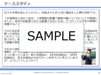 ・オンライン研修は初めての経験でしたが、リアルの研修同様に多くの学びがありました。忙しいといっぱいいっぱいになって、頭の中もごちゃごちゃになりがちですが、日ごろからしっかりと情報を整理するように心がけたいと思います。本日はありがとうございました。(営業、女性)