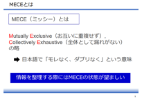 1.MECE(ミッシー)とは~モレなくダブりなく