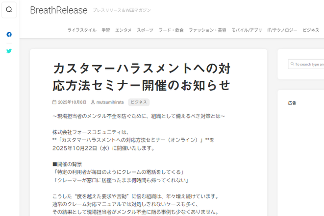 株式会社フォースコミュニティの活動内容について、公開したプレスリリースをご紹介します。(一部のみを記載しております)